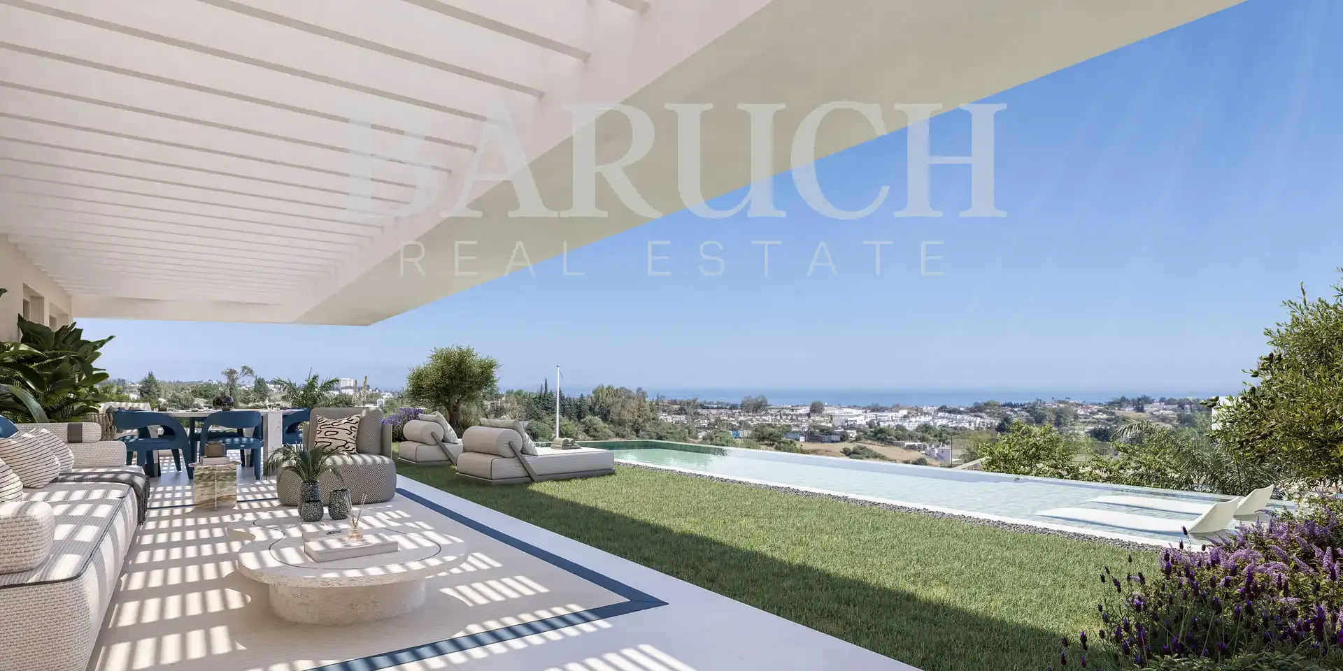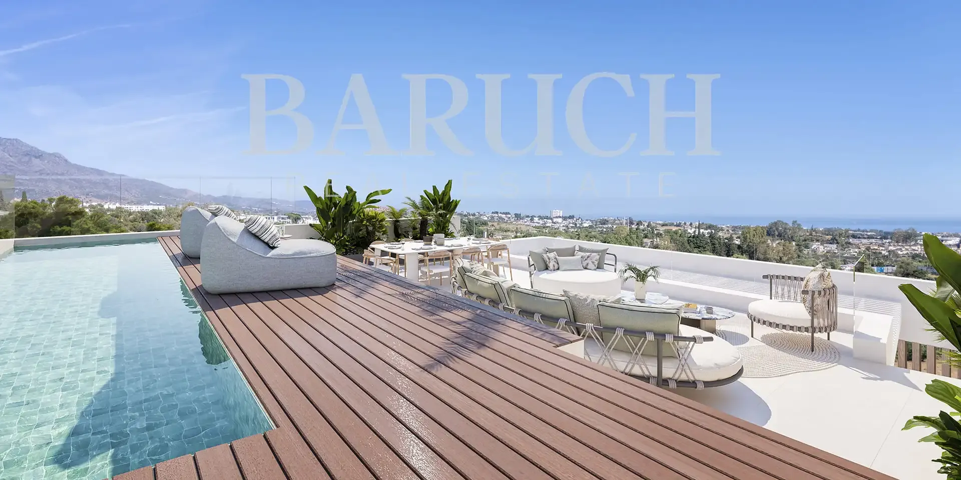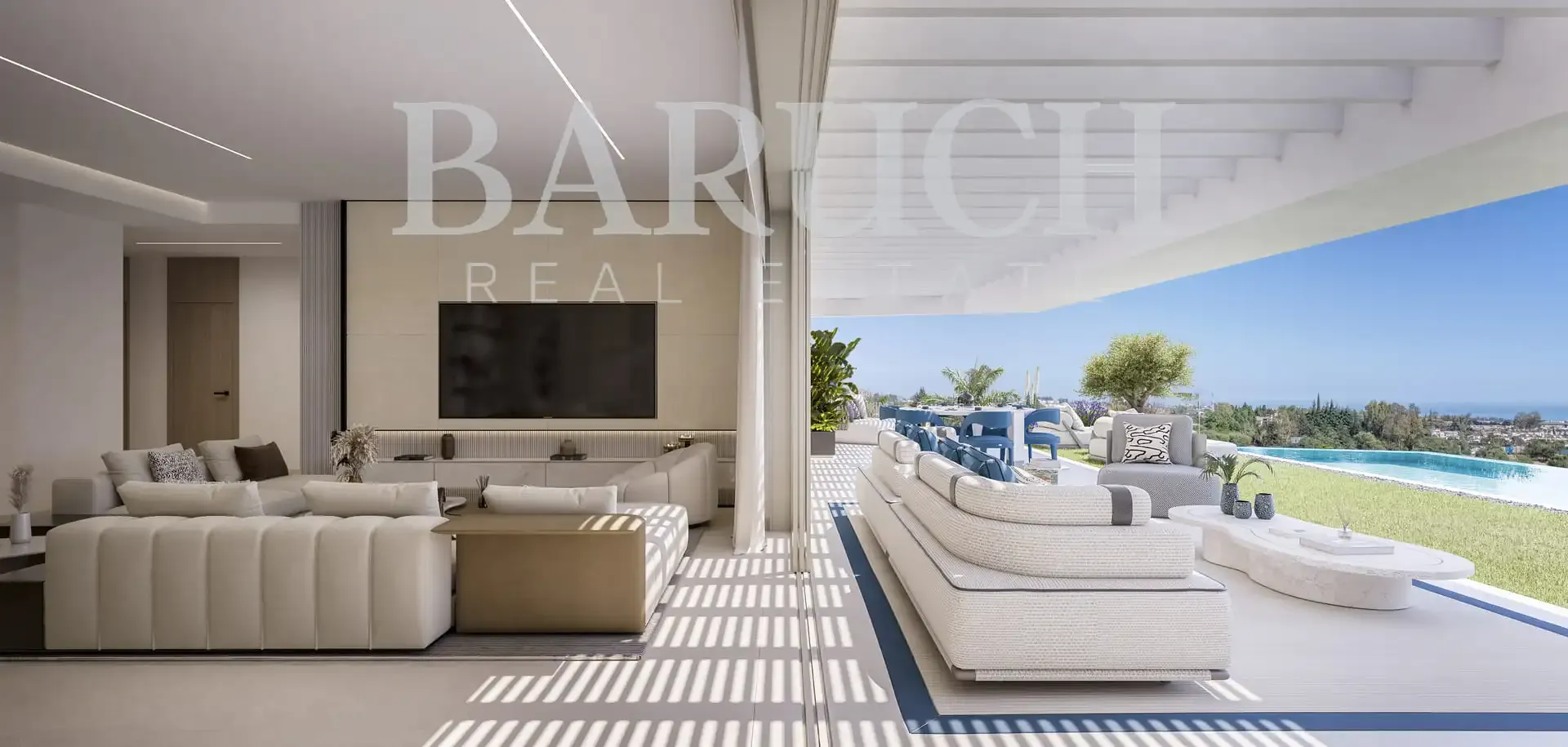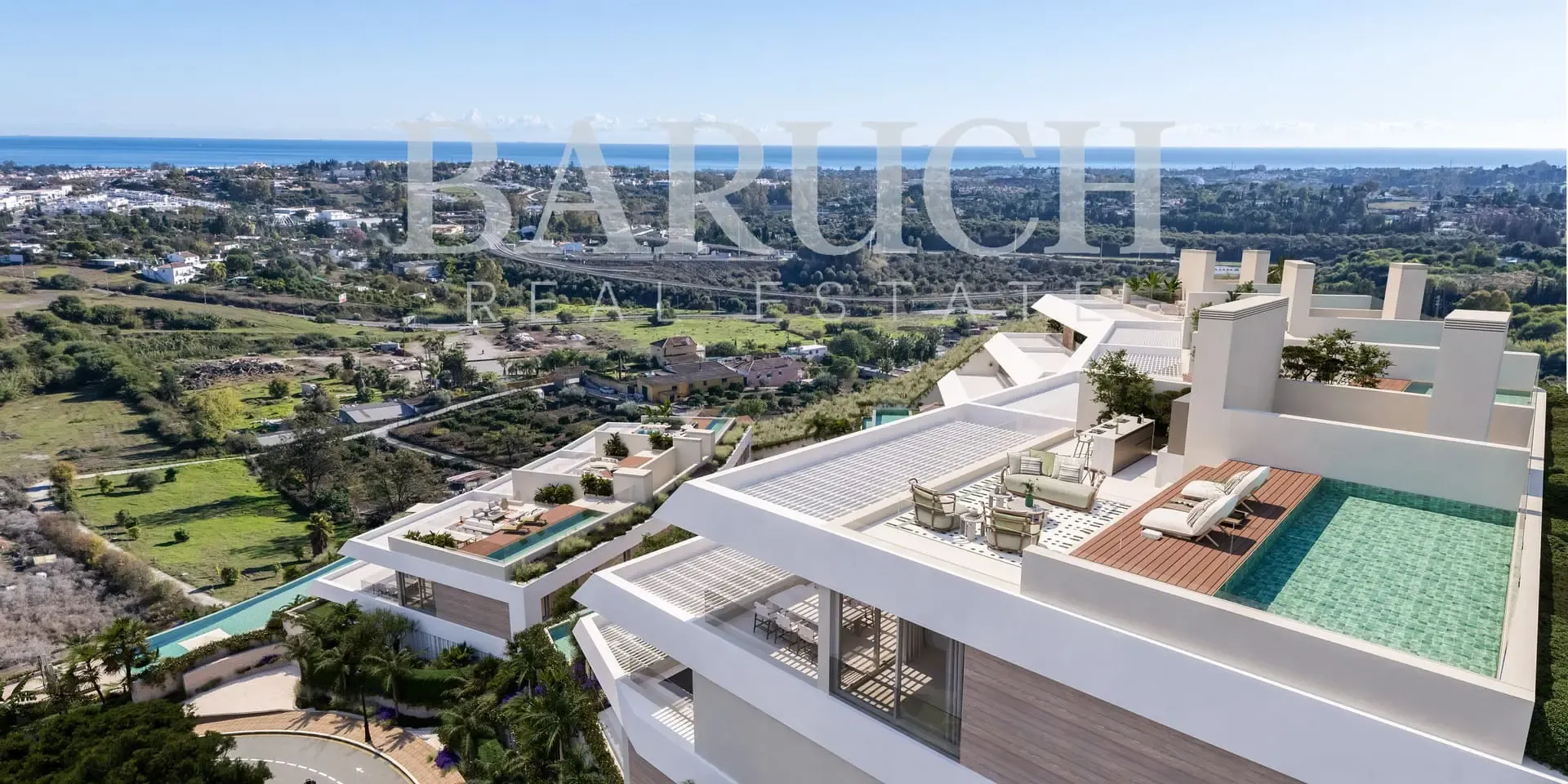 SOLENNE in Benahavís is an exclusive contemporary residential development designed to offer privacy, panoramic views and exceptional natural light on the Costa del Sol. The staggered architectural layout ensures that no home casts a shadow on another, allowing every residence to enjoy abundant sunlight and a natural solarium effect throughout the day.