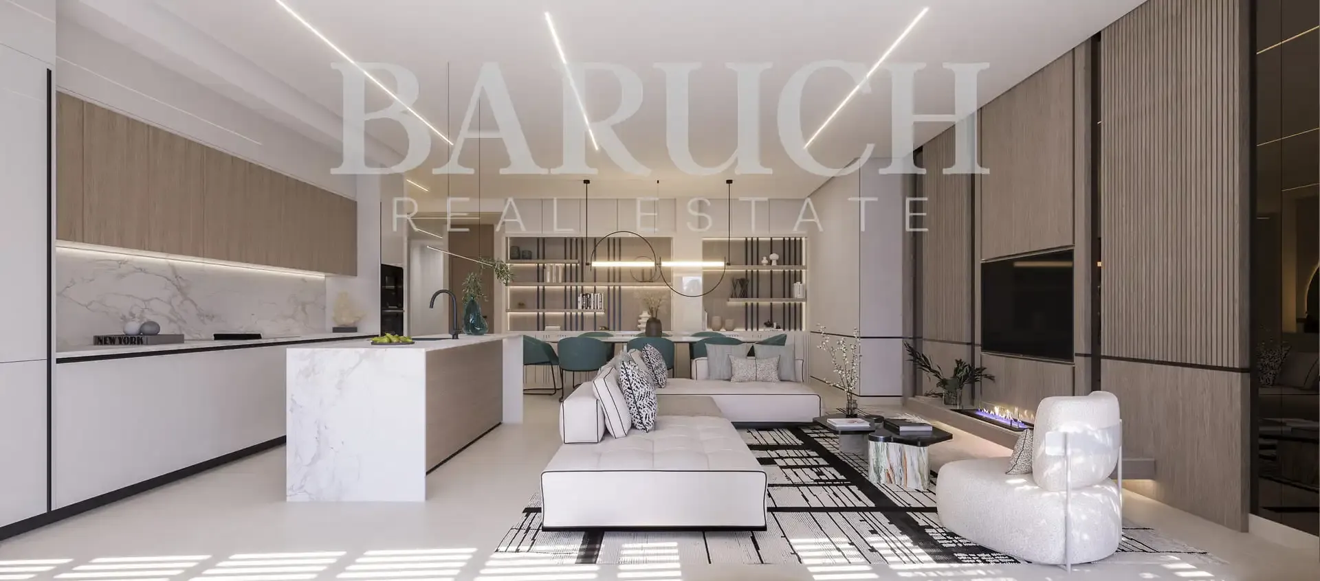 The homes offer interior spaces ranging from 95 sqm to 186 sqm and generous terraces between 35 sqm and 75 sqm, creating a seamless indoor outdoor living experience. Penthouses and ground floor apartments include private pools, while an elegant communal pool enhances the intimate resort style atmosphere. Selected units also feature an expansive basement space, ideal for a private entertainment lounge, home cinema, games area or a fully personalised lifestyle hub.
