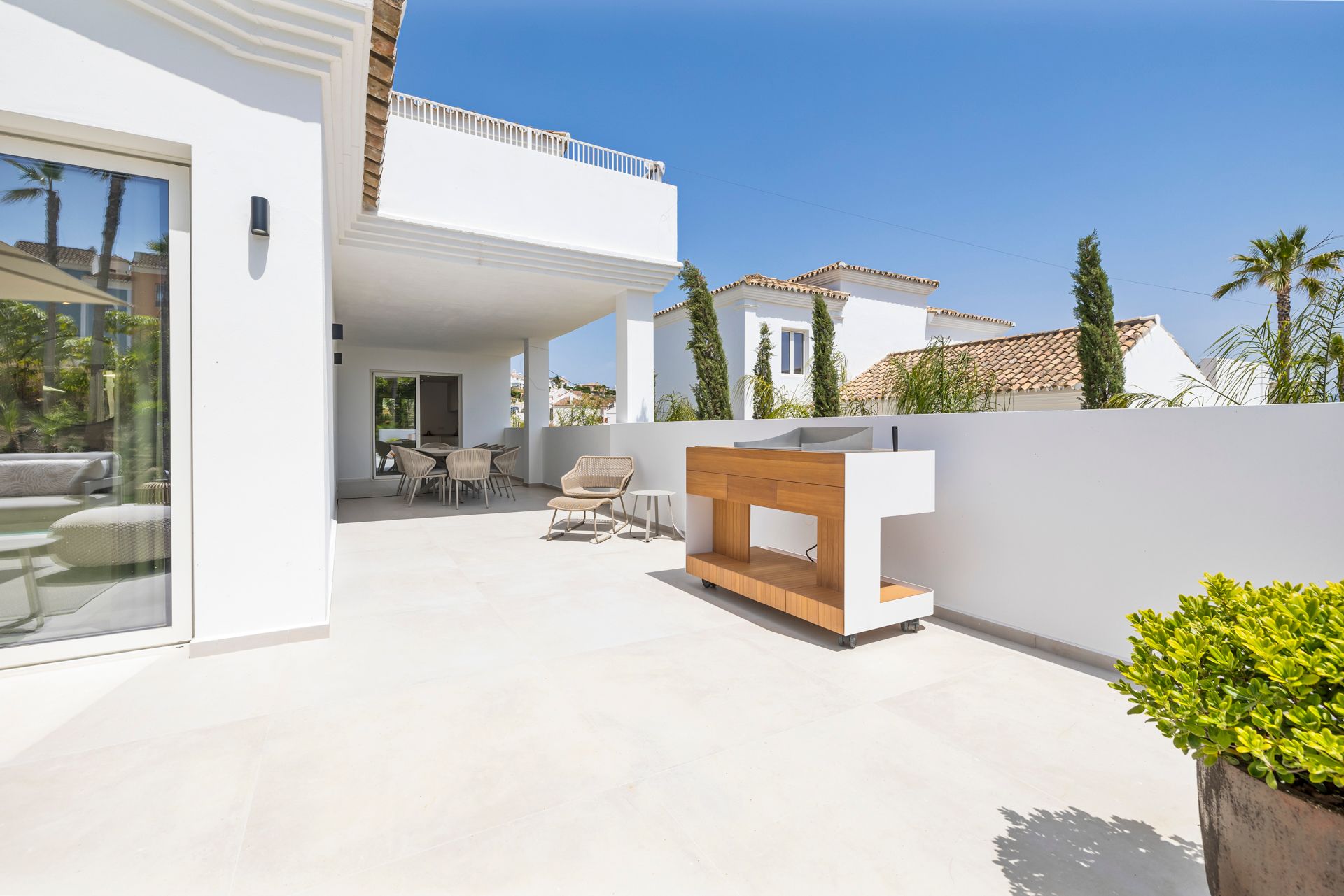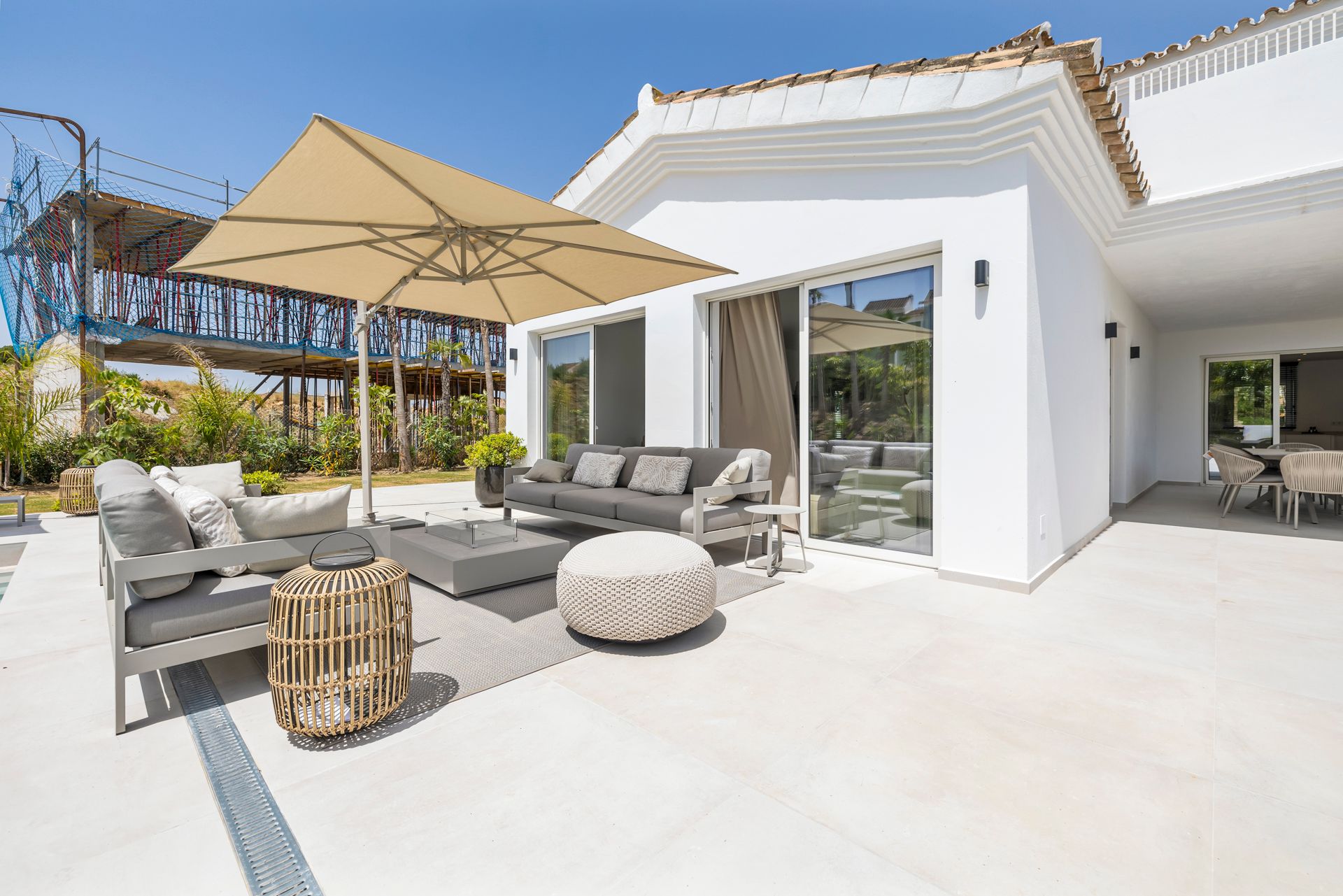 Discover your dream home on the Costa del Sol! This charming detached villa, located just 400 metres from the beach and the famous Finca Cortesin beach bar (one of the most famous hotels in the world), is the perfect retreat to enjoy the sun and the sea breeze. Fully renovated and furnished in a modern style, this 330 m2 property offers high ceilings and bright spaces. On the ground floor is a spacious living room that opens onto a large terrace, ideal for relaxing or celebrating with family and friends. The separate kitchen, also with access to a spacious terrace, is perfect for enjoying family breakfasts or al fresco dining.