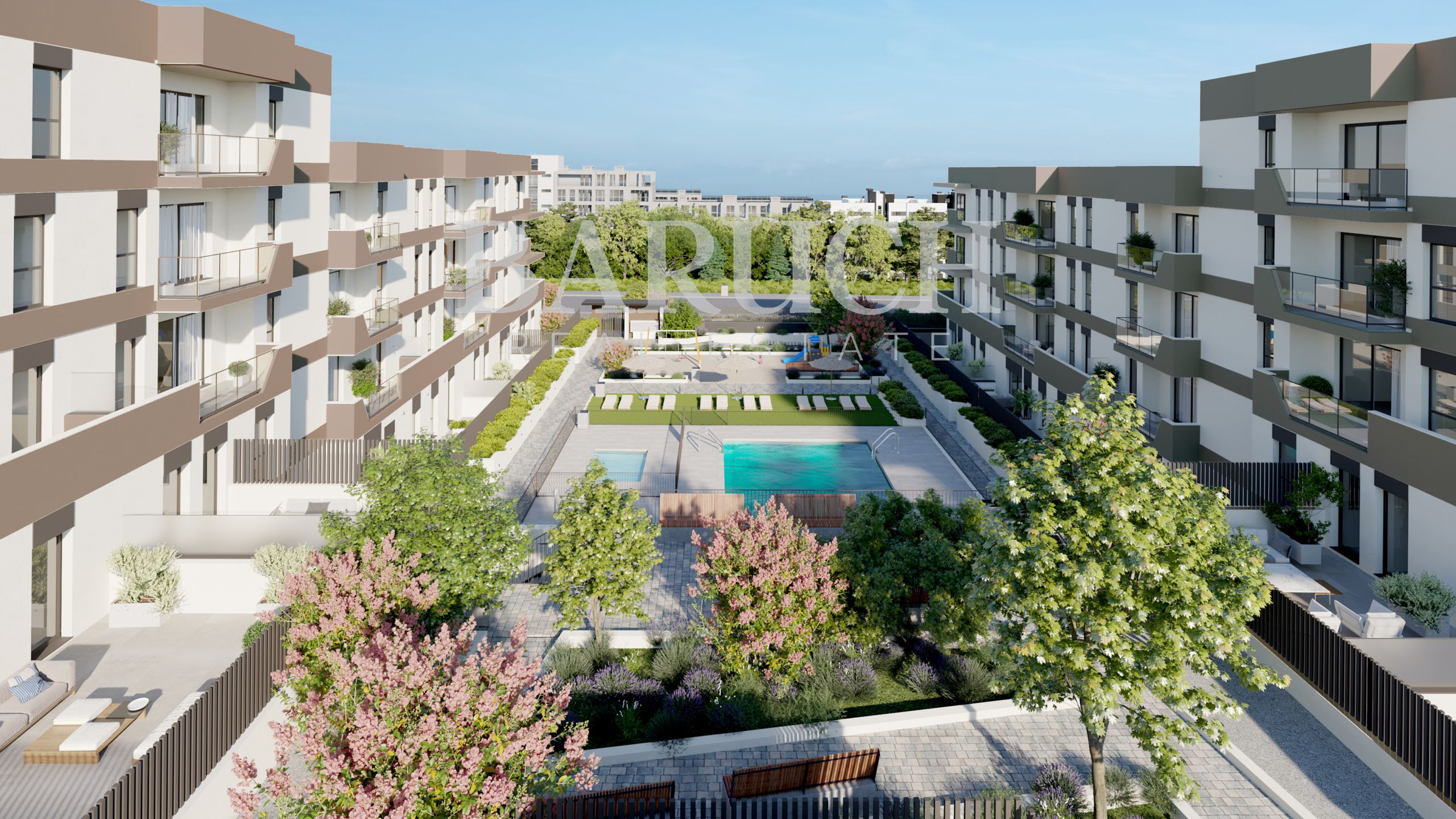 Enjoy outstanding communal facilities including a fully equipped gym, coworking space, saltwater-chlorinated pools, expansive gardens, children's play area and bicycle parking.